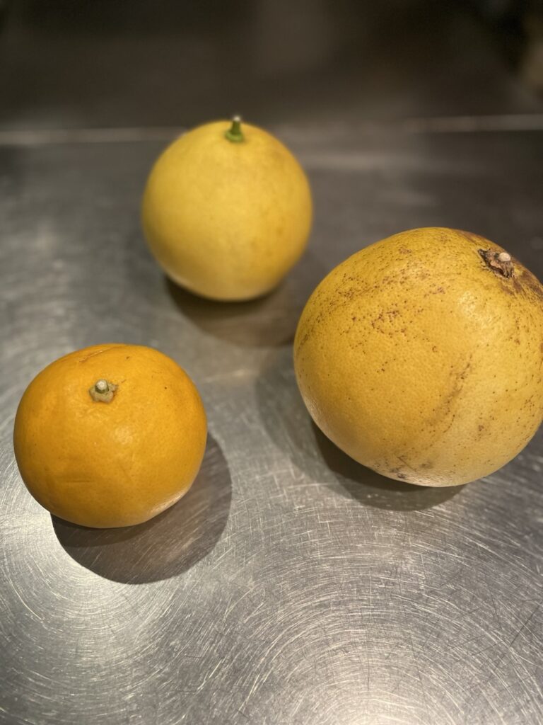 文旦とグレープフルーツを掛け合わせた品種の’チャクラポメロ’は赤い色で